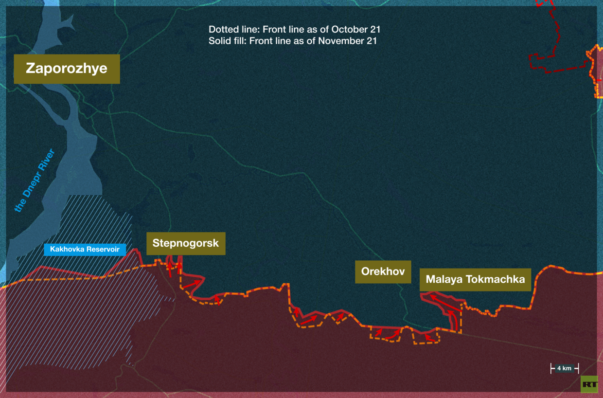 By October, between 2,000 and 5,000 Ukrainian troops had been encircled in Pokrovsk and Mirnograd (Dimitrov). During the first half of November, the AFU attempted to break the siege through Rodninskoye, but each attempt collapsed. By November 15, Pokrovsk had been fully taken, and Rodninskoye partially taken – effectively closing the ring around Mirnograd.