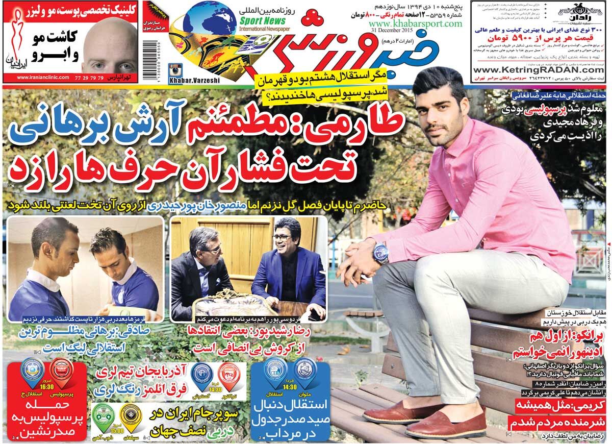 ورزش سهلینک اصلی خبر تاریخ انتشار:1404-10-0804:30:00خبرگزاری:ورزش سهجدول پخش زنده بازیهای دوشنبه 8 دیبرنامه پخش زنده رویدادهای ورزشی امروز ایران و جهان در ادامه قابل مشاهده است.ادامه خبر ...اخبار مرتبط کاهش تولید علت اصلی نوسان قیمت زعفران در بازارتحلیل بازار - 1404-10-10 پیشبینی مهم یک کارشناس از قیمت مسکن در دی و بهمن امسال/ الان خانه بخریم یا نخریم؟خبرآنلاین - 1404-10-10 ۱۰ سال گذشت| طارمی: مطمئنم آرش برهانی تحت فشار آن حرفها را زدخبر ورزشی - 1404-10-10 مرعشی: چاره ای جز گرفتن تصمیمات سخت نیست/ کابینه پزشکیان باید ترمیم شود و افرادی مسئولیت بگیرند که حاضرند آبروی خود را گرو بگذارندخبرآنلاین - 1404-10-10 آغاز نشست علنی مجلس شورای اسلامیآنا - 1404-10-10 «محفل ستارهها»؛ روایت تازهای از آموزش قرآنایکنا - 1404-10-10 تعلیق فعالیت سازمانهای بشردوستانه در غزه توسط رژیم صهیونیستیمیزان - 1404-10-10 انتقاد سفیر روسیه از وام 1.8 میلیارد دلار کانادا به اوکرایننورنیوز - 1404-10-10 آمریکای ۲۰۲۵ در یک نگاه؛ ترامپ در ۱۰ پردهخبرگزاری ایرنا - 1404-10-10