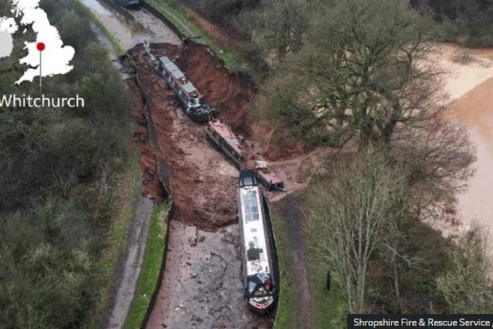 ریزش کانال در انگلیس؛ آب رودخانه خشک شد و قایقها به گل نشستند