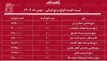 لیست قیمت انواع برنج ایرانی ۲۱ بهمن ۱۴۰۴ / برنج دمسیاه، سرلاشه، شیرودی، هاشمی و...کیلویی چند شد؟ + جدول