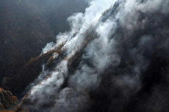 گزارش تصویری | عملیات مهار آتشسوزی مناطق کوهستانی روستاهای دلیر و الیت