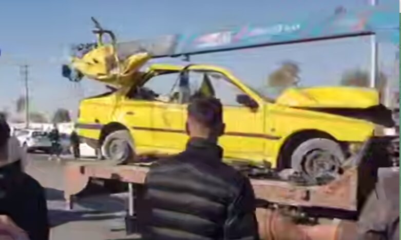 از وضعیت تاکسی زرد بعد از تصادف با تریلی + ویدئو | وضعیت محل تصادف را ببینید
