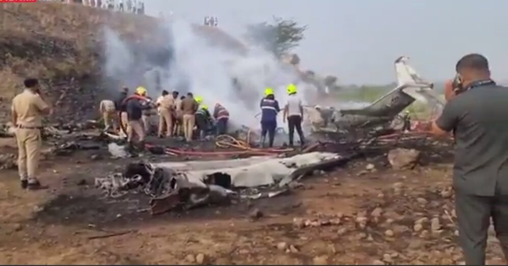 از محل سقوط هواپیمای شخصی یک مقام هندی | ویدئو