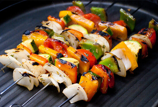 یک بشقاب سبزیجات کبابی + یک نوع سالاد فقط با چند قطره روغن