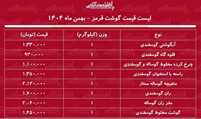 قرمز امروز ۱۸ بهمن ۱۴۰۴ / ران گوسفندی کیلویی چند شد؟ + جدول