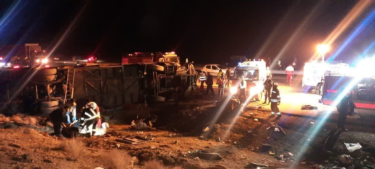افزایش جانباختگان حادثه واژگونی اتوبوس/ تصاویر حادثه