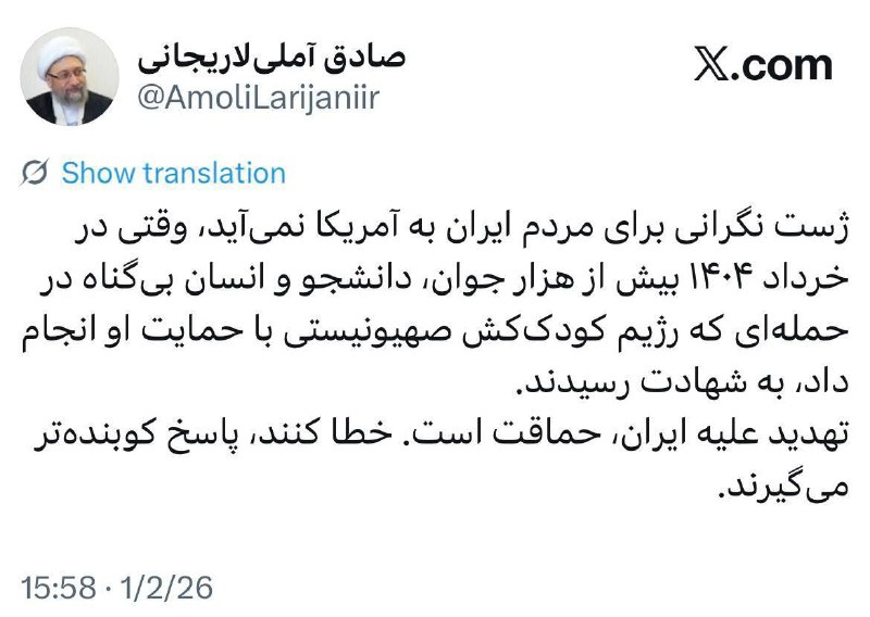 آملی لاریجانی: ژست نگرانی برای مردم ایران به آمریکا نمیآید